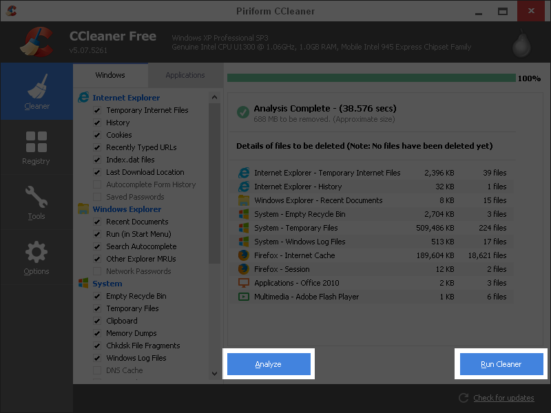 – Để bắt đầu dọn rác, bạn chỉ cần mở CCleaner lên, nhấn vào Analyze để phần mềm quét và hiển thị các file cần xóa, bạn có thể bỏ qua bước này nếu muốn, sau đó nhấn Run Cleaner.