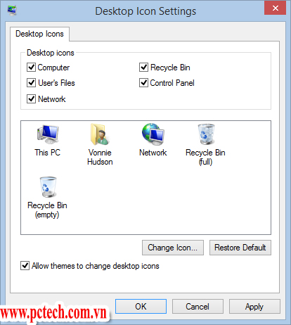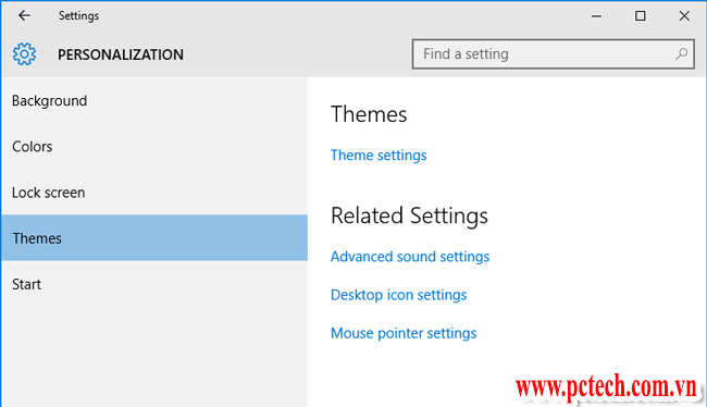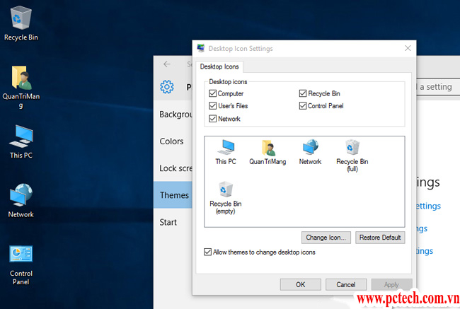Chọn phần Themes ở bên tay trái, và chọn tiếp Desktop icon settings như hình dưới: