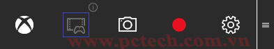 Bước 2: Hộp thoại Game Bar xuất hiện với các biểu tượng thao tác nhanh như mở ứng dụng Xbox, kiểm soát tiến trình ghi âm, chụp ảnh, quay video màn hình game đang chơi và cài đặt.