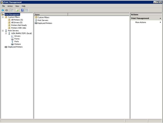 Lúc này bạn đã cài đặt xong Print Services Tools và có thể truy cập vào giao diện điều khiển Print Management bằng cách chọn lệnh Print Management từ menu Administrative Tools của máy chủ. Khi thực hiện thao tác này, bạn sẽ thấy một màn hình tương tự như màn hình thể hiện trong hình B bên dưới.
