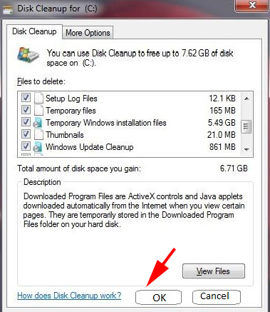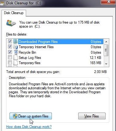 Hộp thoại lựa chọn ổ đĩa xuất hiện, hãy để mặc định và nhấn OK. Sau khi quá trình quét kết thúc, bạn hãy nhấn vào lựa chọn Clean up System files.
