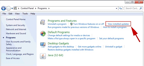 Trong Programs and features, bạn  hãy nhấn vào tùy chọn View installed updates